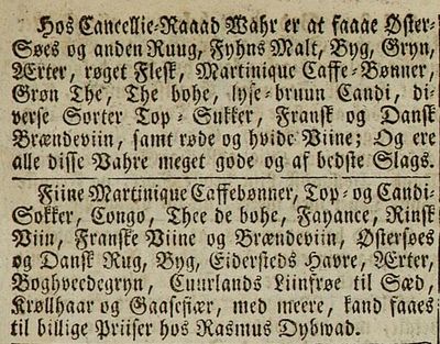 Utvalget av te hadde også forandret seg. I de siste tiårene på 1700-tallet forteller tollisten og avisannonser at det i all hovedsak var Congo- og Bohe-The å få kjøpt. I Jomfru Truchs tid, på 1830, -40- og 50 tallet var det, i tillegg til Congo- og Bohe-The, også Imperial-, Hysan-, Haysansehin og Pouchong-The. Disse kunne kjøpes både i kasser og i ¼ pundspakker fra byens kjøpmenn.