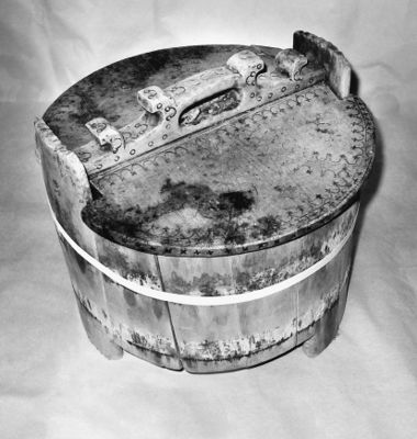 Ovanfor har me bilete av eit par trekjerald til mjølkehandsaminga. Her har me eit par som vart nytta til å føre dei ferdige produkta frå støylen. Til venstre er bilete av ein holk til mjølk eller rjome, til høgre kan ein sjå ein smørbutt. Laggekoppar som ikkje er i bruk vil gjerne turke og kropne, og då er det utsett for at gjordene fell av, og koppen løyser seg opp i ein haug med lause stavar. På holken ser ein at det har blitt sett på nye (og strammare) tregjorder, medan butten har fått ei millombils oppstramming ved hjelp av eit plastikkband.