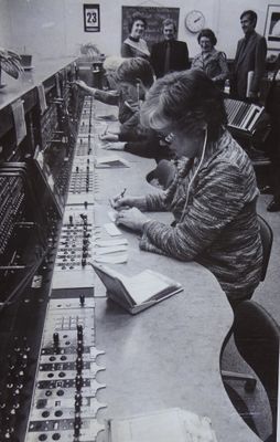 Da krigen var slutt ble det ekstra stor pågang fra folk som hadde behov for å ringe, og på den manuelle sentralen i Harstad satt det seks «telefondamer» og formidlet samtaler. Skulle man ringe riks, kunne ventetida bli lang. I 1953 fikk Harstad sin første utendørs telefonboks: Den klassiske røde, tegnet av arkitekt Georg Fredrik Fasting, og som han vant førsteprisen med i en konkurranse utlyst av Oslo Telefonanlegg i 1933. Den ble plassert ved drosjeholdeplassen på Torvet.