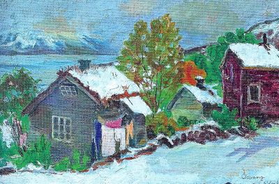 Theodor Aavang var tilbake i Volda, truleg i 1918. Han hadde då vore til sjøs i nokre år. Under reisene sine hadde han malt, truleg akvarellar, og han var nå tilbake med voner om sal. Historikaren Jostein Nerbøvik meiner at dette var den første kunstutstillinga i bygda. Vonene om inntekter vart brutalt brotne.