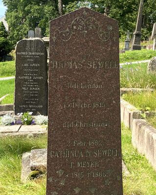 Thomas Sewell er gravlagt på Vår Frelsers gravlund i Oslo sammen med kona Cathinca.