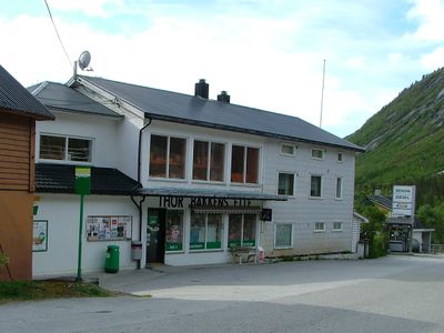 Sidan 1956 har det også vore bensinstasjon knytt til butikken, i dag er dette ei kortpumpe.