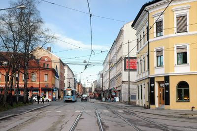 | 59 | omkr. 1880–1930-åra | Bygård | Halléngården. Ombygd for Thorleif Hallén 1931–1934, ark. Ole Sverre. Konfeksjonsbutikk til 2002. Interiøret freda 2004, fasade og forretningslokale freda 2008. Bygningen har forfalt siden 2002, og det har vært flere rettssaker omkring vernebestemmelsene (se artikkel om bygningen). | |