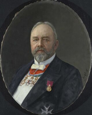 Maleri av Andreas Lauritz Thune (1848–1920) som utviklet bedriften fra en håndverksbedrift til en stor industribedrift.