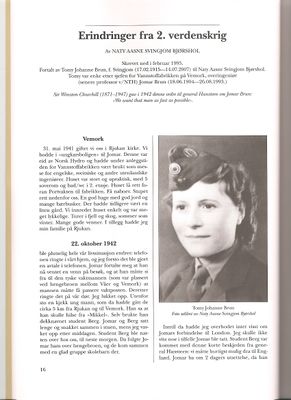 Tomy Johanne Brun ble født på Rjukan 17. februar 1915, død i Trondheim 2007. Hennes foreldre var Aslak Olavsson Svingjom, Åmotsdal (1877-1948) og Signe Jørgensdatter Åren, Flatdal (1876-1966). Hun vokste opp på Rjukan og ble i 1941 gift med den kjente tungtvannseksperten, kjemiingeniør og sjef på den norske tungtvannsfabrikk på Vemork, Jomar Brun (18.06.1904 i Trondheim - 26.08.1993 i Flatdal, Seljord), som var sønn av distriktstollinspektør Lorents Brun og Ingrid. Paret flyttet senere til Trondheim.