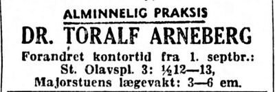 | Dr. Arneberg nyder megen popularitet i sin praksis, og er overordentlig avholdt innen en stor vennekrets. | ||