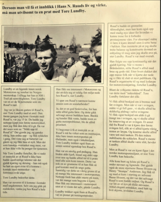Tore mente han kom med i motocrosseventyret akkurat da det virkelig tok av. Dette var før TV-overføringenes tid, og farten og spenningen som denne sporten kunne by på representerte noe helt nytt. Det kunne være så mange som 10.000 tilskuere på stevnene.