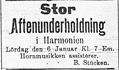 I 1904 kom det altan på bolighuset, og fra 1910 ble Harmonien fast lokale for Harstad komm. Kinematograf frem til 1930. Før det hadde det bl.a. vært treningslokale for Harstad Turnforenings første år etter stiftelsen i 1898 og ellers utleid til ulike sosiale formål.