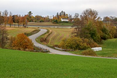 I 1950-årene ble det oppført fire bolighus i begynnelsen av veien, og senere er ytterligere to hus blitt oppført samme sted. Forøvrig går veien gjennom kulturlandskap, og to gårdsbruk har adresse til den.