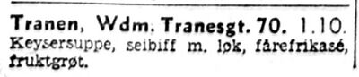 Den offisielle åpningen av Tranen fant sted 27. oktober 1921, og Aftenposten omtalte begivenheten i sin utgave dagen etter: