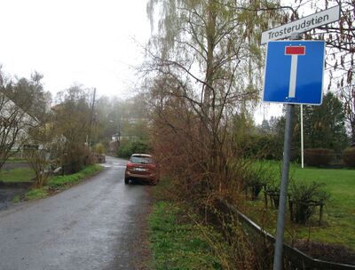 Veien fikk navn i 1951 etter husmannsplassen Trosterud under Ris.