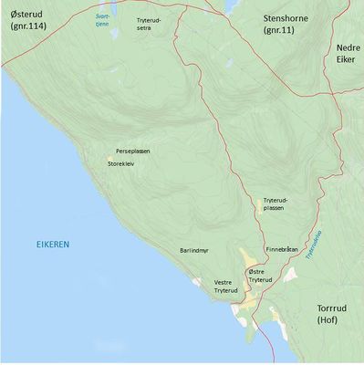 Se utdypende artikkel om husmannsplassene under: Tryterudeie.