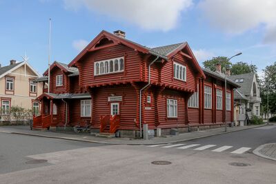 Turnhallen i Fredrikstad med Turngata opp til venstre.