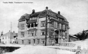 Kjetil og Maline Tveit dreiv forretning, postkontor og telegraf på Tveitsto attmed hotellet.[3] Under den store brannen i Tveitsund 6. mars 1922 blei familien Tveit hardt råka. Fleire av bygningane deira brann ned, og eitt av husa var hotellet. Ikkje lenge etter branne fekk dei bygd eit nytt hotell i jugendstil på same staden med både uthus og garasje. Hotellet blei mykje nytta til konferansar og møte av forskjellig slag. Det var ikkje verre omreisande som var innom, men også bygdefolk.