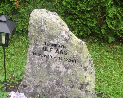 Ulf Aas er gravlagt på Vestre gravlund i Oslo. Tittelen Tegneren er benyttet på gravminnet.