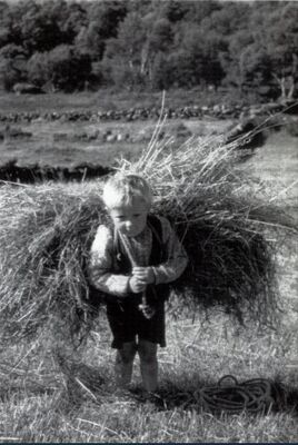 Det bodde folk i «alle» aldre på Ullandhaug i desember 1900. Spebarnet Ane Birgitte Thomsen på bnr. 9, Solheim, var født i oktober dette året. Hun var altså to måneder da folketelleren kom på besøk, og den da yngste beboeren på Ullandhaug. Foreldrene var Aksel og Marie Thomsen. Ole Johannesen Finnvik fra Vikedal var den eldste beboeren på dette tidspunktet. Han var født i 1813, var enkemann, jordbruksarbeider/løsarbeider og losjerende på bruk nr 14. Den nest eldste, Ole Bellestsen, bodde på bnr. 19, Vestbø. Han var født i 1815. Dette var altså to riktig gamle menn som levde i en tid da forventet levealder ved fødselen, var rundt 60 år for menn og 63 år for kvinner (tall for 1920-årene), mens de tilsvarende tallene 100 år tidligere hadde vært hhv. 45 og 48 år.[1] Det var altså ikke slik at selv om forventet levealder i samfunnet var forholdsvis lav, så var det ingen eldre i befolkningen. Det var den høye barnedødeligheten, særlig blant spedbarna, som trakk ned forventet levealder. Hadde et barn nådd ettårsdagen, var sjansen stor for at barnet fikk oppleve fem-årsdagen. Det var ellers mange barnerike familier på Ullandhaug i 1900. Familieplanlegging var lite utbredt, i alle fall på landsbygda, der bl.a. barnas arbeidsinnsats og dermed bidrag til familieøkonomien, fremdeles spilte en viktig rolle. Nedgangen i gjennomsnittlig barnetall i familiene startet i byene mot slutten av 1800-tallet og ble først synlig i familier knyttet til primærnæringene, noen tiår seinere. (ev. en lenke til studien av dette fenomenet i Stavanger av Alsvik og Dyrvik) Nesten en tredjedel, dvs. 55 av 141 av innbyggerne på Ullandhaug i desember 1900, var yngre enn 15 år. Familiene Gilje på bnr. 7 og Thomsen på bnr. 9, Solheim, var de mest barnerike med hhv. sju og seks barn hver. Videre hadde én familie fem barn, to hadde fire og én hadde tre.