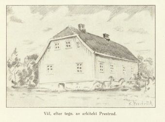 | Tegning av arkitekt K. Prestrud, fra Kråkstad: En bygdebok, b2, utg. 1934. | |