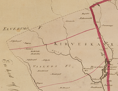 Kart over Våler Finnskog, utsnitt av kartet til Carl Axel Gottlund.