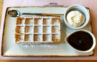 Vafler er vanlig å servere til kaffen. Ved å tilsette sukker i røra får man søte vafler, men vanligvis bruker man nå svært lite eller ikke noe sukker i vaffelrøra. Tidligere kunne det være langt mer sukker, som i en oppskrift på et gammelt vaffeljern som oppgir 3/4 pund sukker til 2 pund mel. De kan serveres med forskjellig tilbehør, som syltetøy, rømme (gjerne kombinert med syltetøy), smør, brunost og strøsukker. Vaflene settes gjerne fram slik at hver enkelt velger tilbehør etter smak. Noen serverer også vaflene som en ferdig dessert med piska krem og syltetøy.