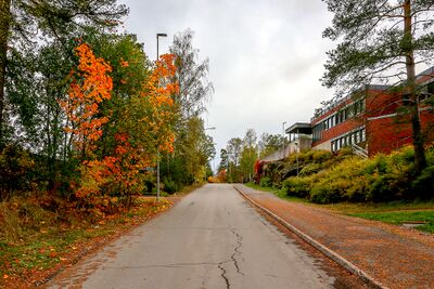 Vardåsveien sett mot nord, med Ski sykehus til høyre i bildet.
