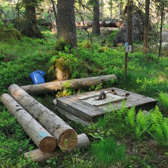 | Vingersruta, flyktningeruta fra årene 1942 - 1945, passerer forbi brønnen i Vastaberget. Vingersruta brukes nå som tursti, og her i Vastaberget er det mulig for turgjengerne å leske seg med kaldt og godt drikkevann. Foto: Tor Solbergseter (2021).