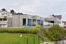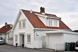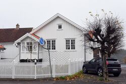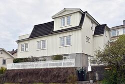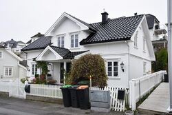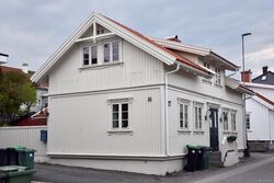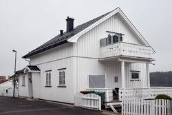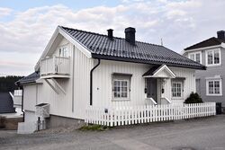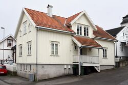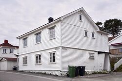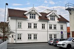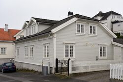 | 14 | Gnr. 106/55, «Skougaards hus» Oppført i 1904 etter tegninger av arkitekt Haldor Børve som privatbolig for familien Skougaard. Var byens sykehus og folkebad i årene 1930–1976. | |