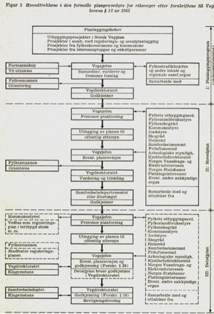 Etter bygningsloven hadde kommunene planleggingsansvar for de fleste offentlige tiltak innen kommunegrensene, mens Statens vegvesen hadde ansvar for å ivareta riksinteressene for planlegging, bygging og drift av riksvegnettet i kommunen. Siden Statens vegvesen hadde jobbet med vegplanlegging i mer enn 10 år før kommunene begynte å jobbe mer aktivt med byplanlegging var det ikke rart at vegvesenet var mer avansert og at det ville ta lang tid for å både utvikle en ny planleggingslov og samtidig bygge opp planleggingskompetansen i kommunene.