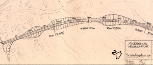 Vegplanene viste både horisontaltrasé med skråningsutslag og vertikal trasé. Figurene under viser opptegning av en vegtrasé i terreng (tegnet i 1980 av Scandiaplan for Akershus vegkontor. Forfatteren var vegplanleggeren i dette prosjektet). Dette var ett av tre alternative løsninger. Alt er håndtegnet med tusj.