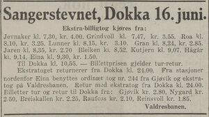 Vestoplandenes Sangerforbund annonserte for sangerstevnet på Dokka 16. juni 1935 i avisa Velgeren 8. juni 1935.