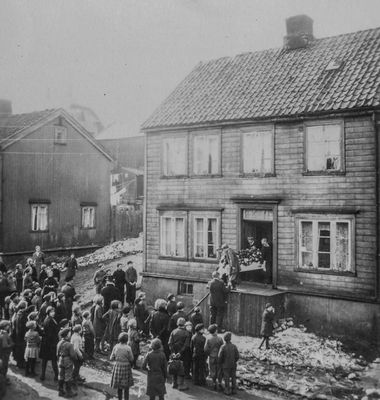 I 1916: Skipper Aslak, Emilie Ovidie, Klara Ragnhild og telegrafbud Odin Georg Eikrem, tjenestepike Charlotte Degermark, tjenestepike Othelie Johanna Olsen.
