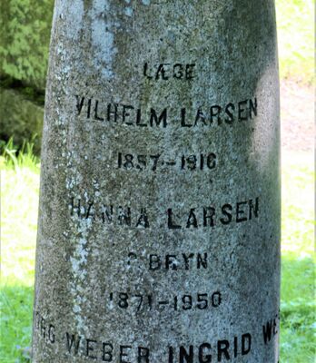 Vilhelm Hartvig Larsen er gravlagt i familiegrav på Vestre gravlund i Oslo. Tittelen Læge er benyttet på gravminnet.