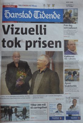 Vizuelli ble tildelt Harstad kommune, Harstadergionens Næringsforening og Sparebank1 Nord-Norges næringspris for 2013. |