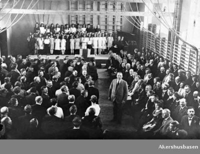 - En lesestue ble innredet like etter krigen på galleriet over gymsalen. Det var lite og mørkt, og lukten fra skoskapene fra gymgarderoben gjorde det utrivelig å være der. Da elevene fra Sørum skole flyttet tilbake, ble det bedre plass, og ny lesestue med filmframvisning ble innredet i kjelleren i 1969.