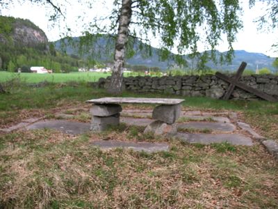 Rundt kyrkjegarden er ein steingard med ein raud port i. Låsen ser ut til å ha årstalet 1937 rissa inn. Framleis vernar kyrkjegardsmuren nokre gravar med jarnkors eller gravsteinar, hellene i bakken som syner kyrkja sitt omriss og eit enkelt altar i stein der koret ein gong var.