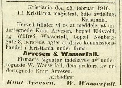 - Norsk Kundgjørelsestidende 21. mars 1916 s. 5